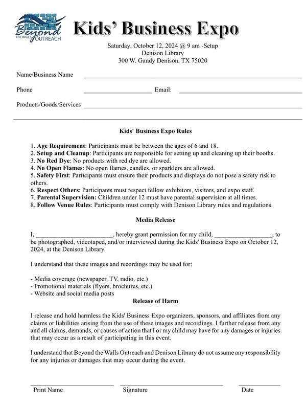 Is your child interested in starting their own business or learning about entrepreneurship? We invite you to sign them up for our Kid's Business Expo, happening on Saturday, October 12, at the Denison Library (300 W Gandy, Denison, TX)!