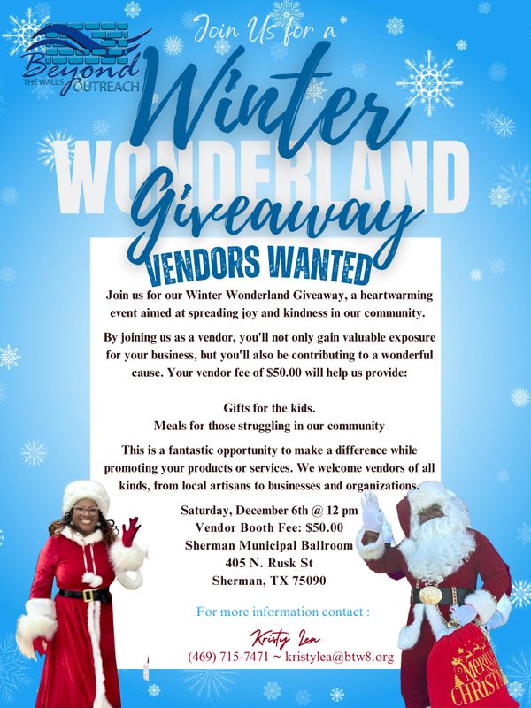 Beyond the Walls Outreach is excited to announce our Annual Winter Wonderland Giveaway—a holiday tradition filled with joy, generosity, and community spirit!